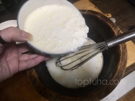 В этом деле не борщим, помним, шо манка потом набухнет и есть риск получить вместо теста кашу.