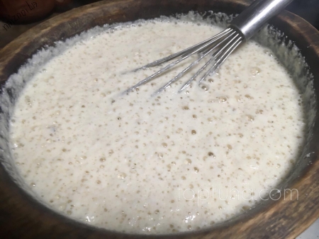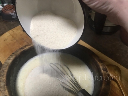 вымешиваем и оставляем набухать манку, а тесто пузыриться минут на 20.