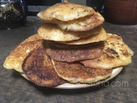 Я по традиции пекла на лопате до легких подпалин. О вкусах не спорят как говорицца. В любом случае блинчики получаются рыхлыми, мягонькими и вкусными. Жорлим и не выделываемся. Гы!