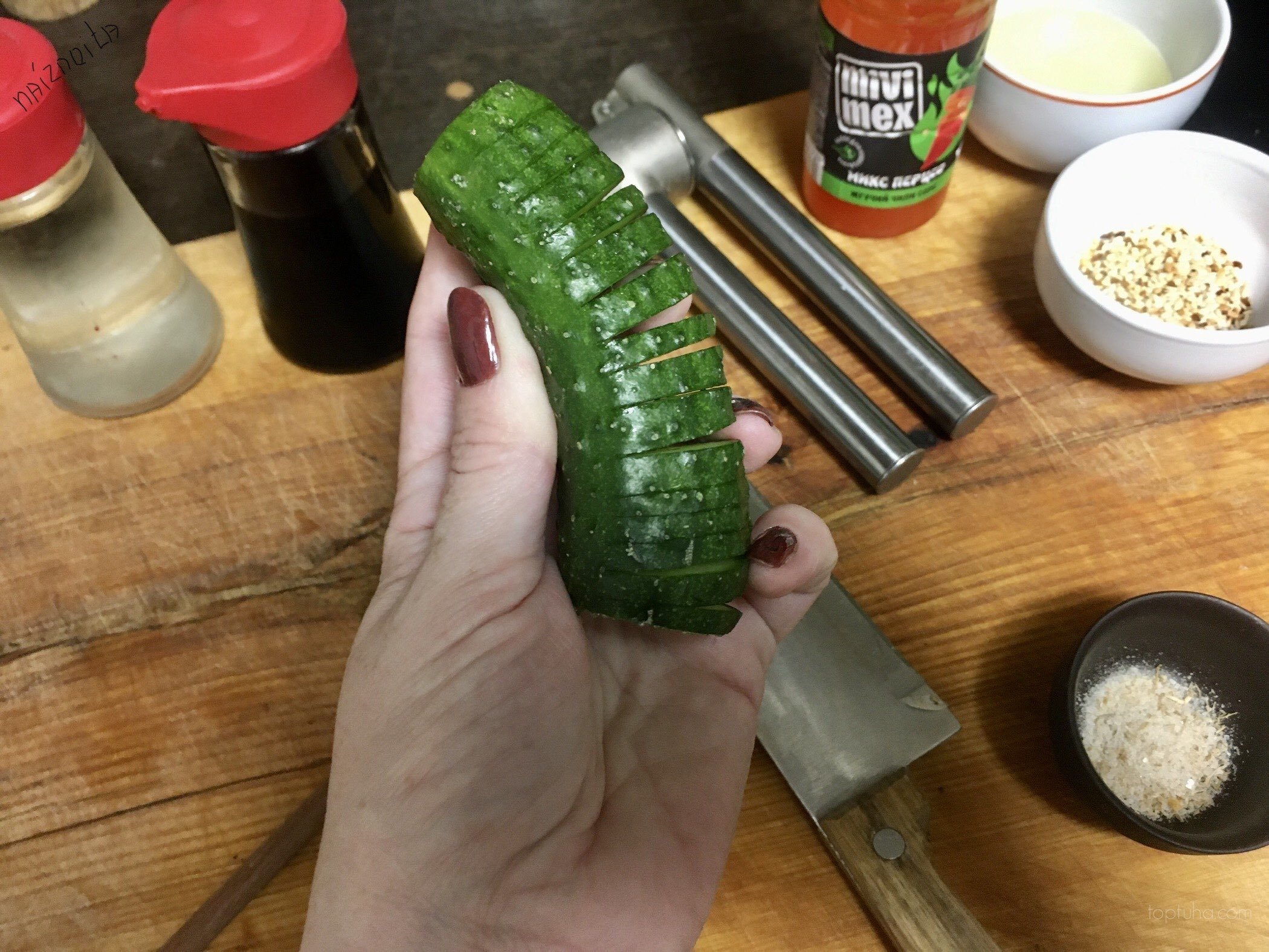 Берём огурцы, моем и безжалостно отрезаем им жопы.