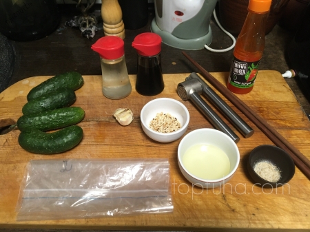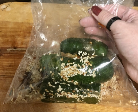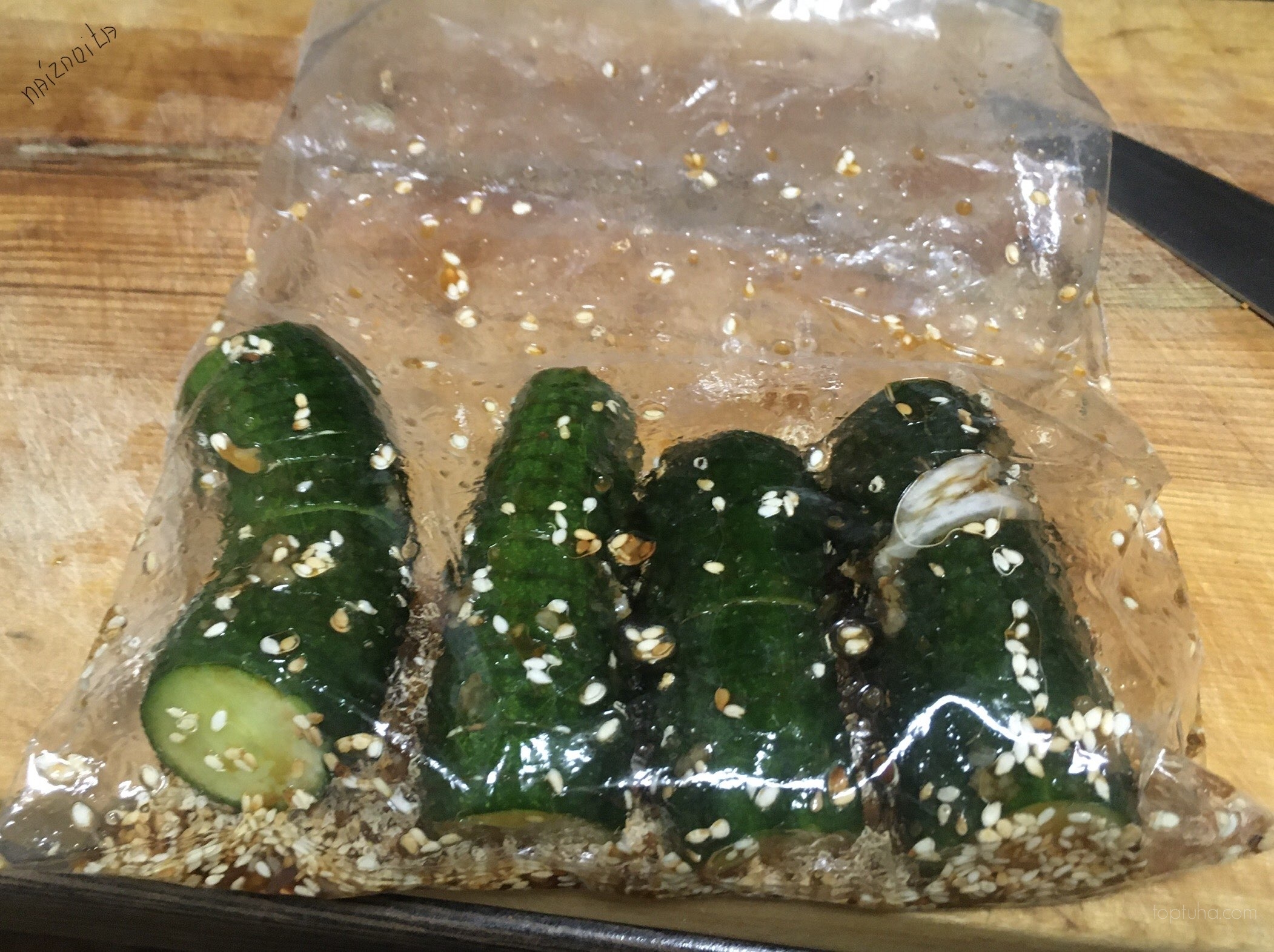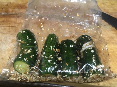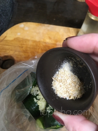 Складываем огуречное хозяйство в пакет, сверху давим чеснок,