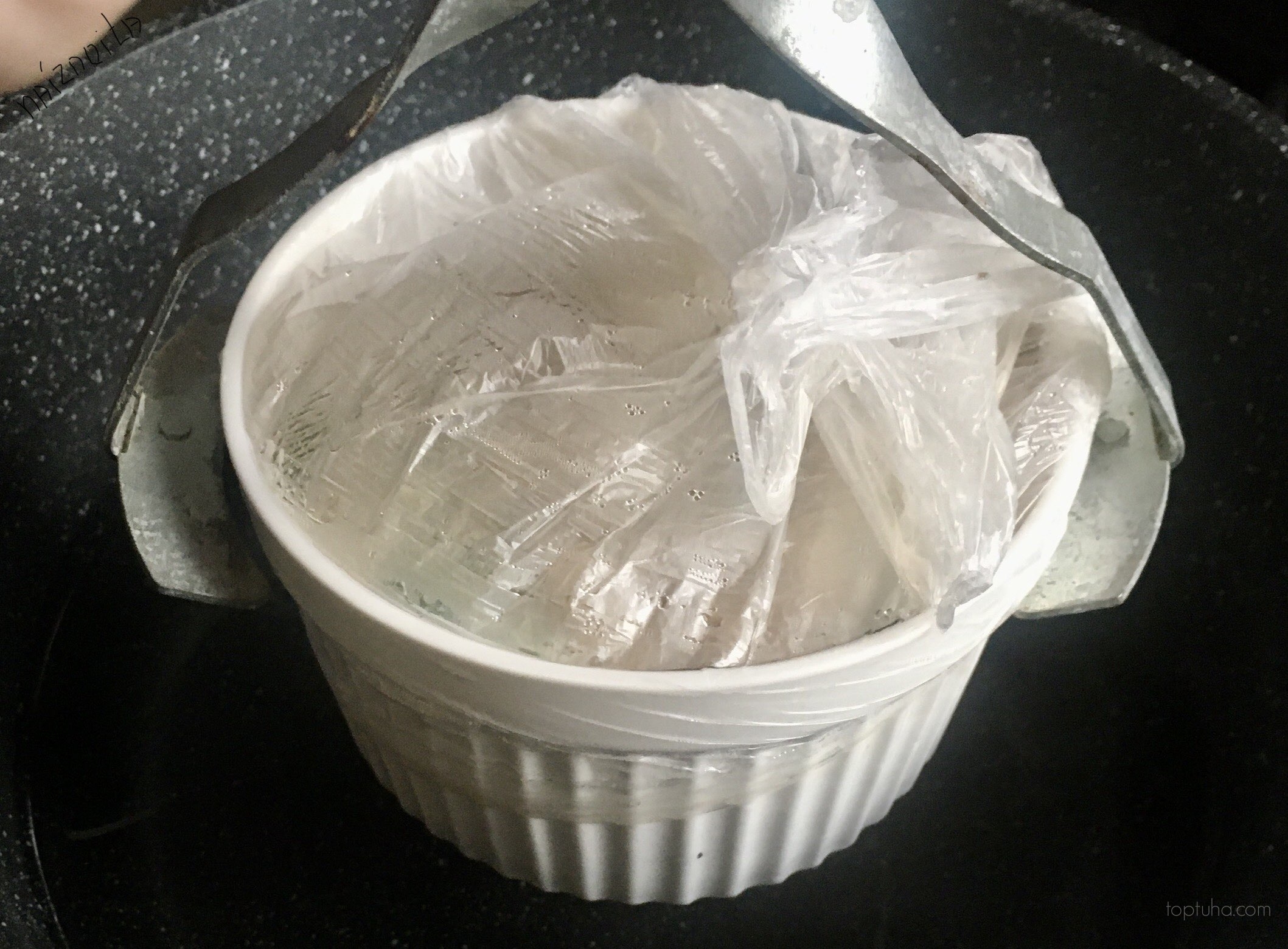 Варим на водяной бане до готовности, что-то около пяти минут.