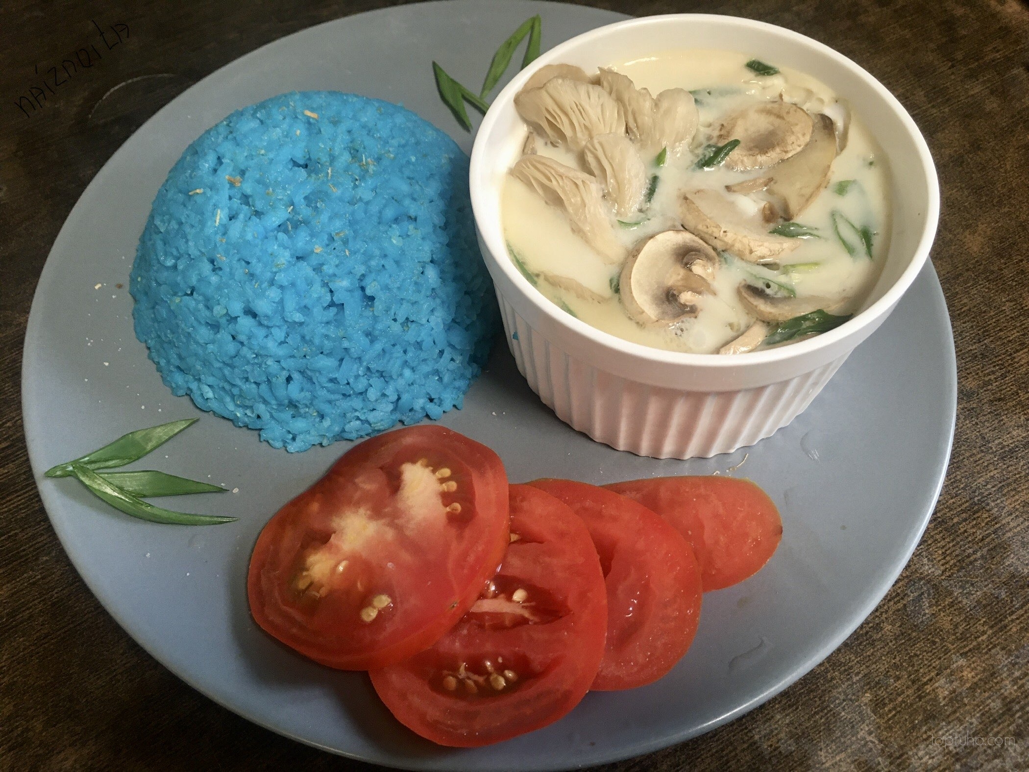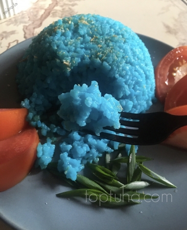 (да, это - синий рис)Мелкий неожиданно решил похвалить мою еду: